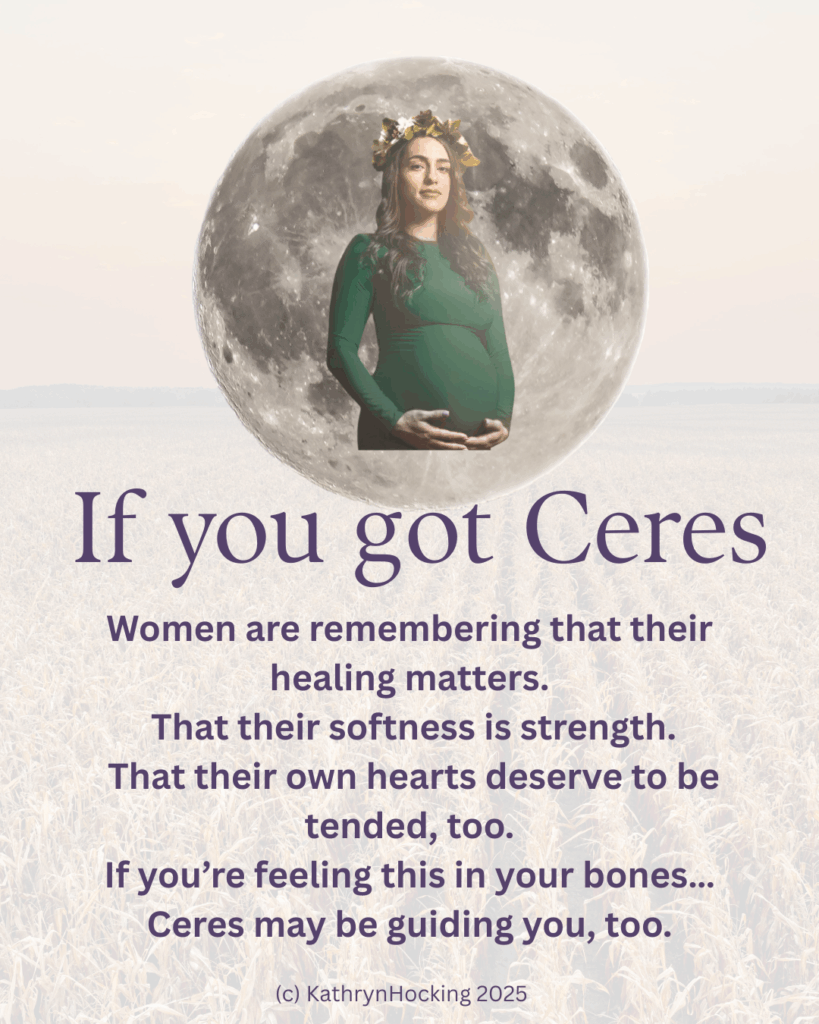 You’re being guided by Ceres — the Great Mother of the zodiac. She brings the sacred medicine of nourishment, loss, and rebirth.
