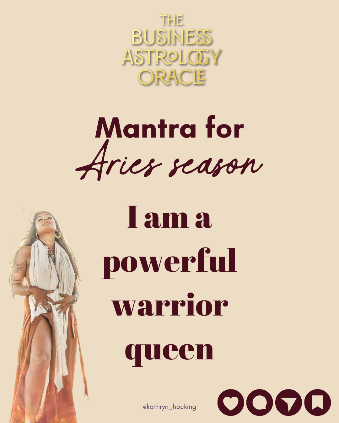 Visibility is another area that comes alive under Aries. The first house, which Aries rules, is all about identity and how you show up. In business terms, this translates to how clearly and boldly you are claiming your place in your field. This is not the season for shrinking your message to make it more palatable, or hedging your expertise to avoid standing out. Aries season rewards the entrepreneur who steps forward and speaks directly. If your content has been playing it safe, you will feel the pull to say something more true.