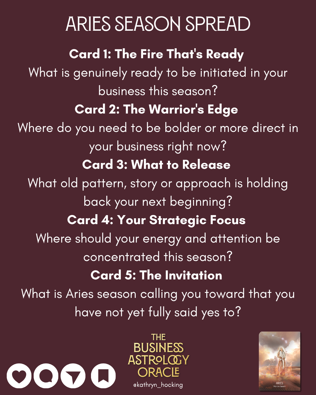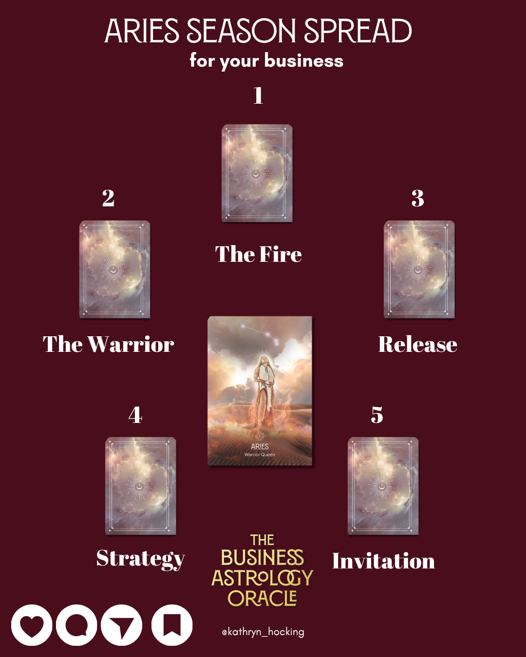 Here is a five-card Aries Season Oracle Spread using the Business Astrology Oracle Deck to help you step into this season with clarity and courage.