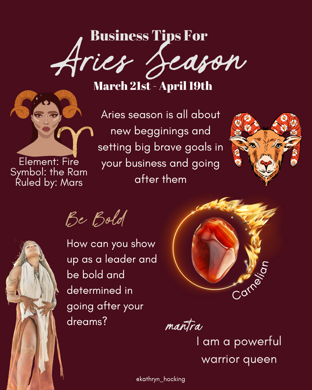 Take a look at your business momentum during this season as well. Aries is a fire sign, and fire has a useful way of revealing what is actually working versus what is just keeping you busy. Where is your energy going that is not returning anything meaningful? What projects, commitments or habits are quietly draining you? Aries season is a good time to make those honest assessments and let something go so that what you are genuinely excited about has room to grow.